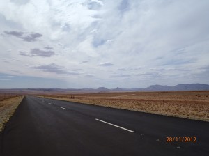 Gavin is a skilful mechanic with great aspirations and follows his aspiration to pass his masters in the near future. He made some minor adjustments to Livingstone and I was on my way wearing my new pair of riding trousers purchased at cost from the BMW, Upington. My old, cheap khaki Red Route summer trousers had served me well but had become worn and torn because of daily use, not to mention the many beatings on rocks they had received from the washer women back in the adventurous days of my journey.